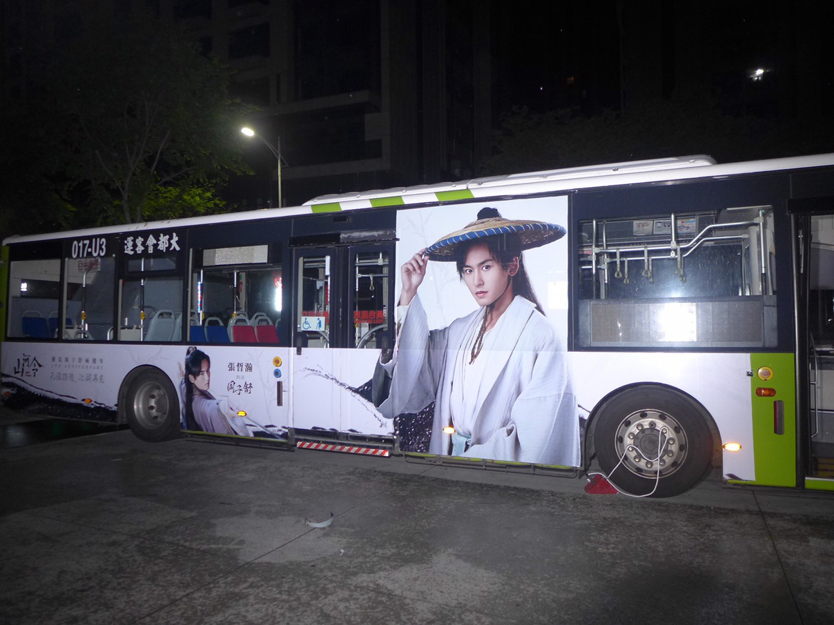 燈箱、掛旗、 車箱內海報、座椅靠巾等